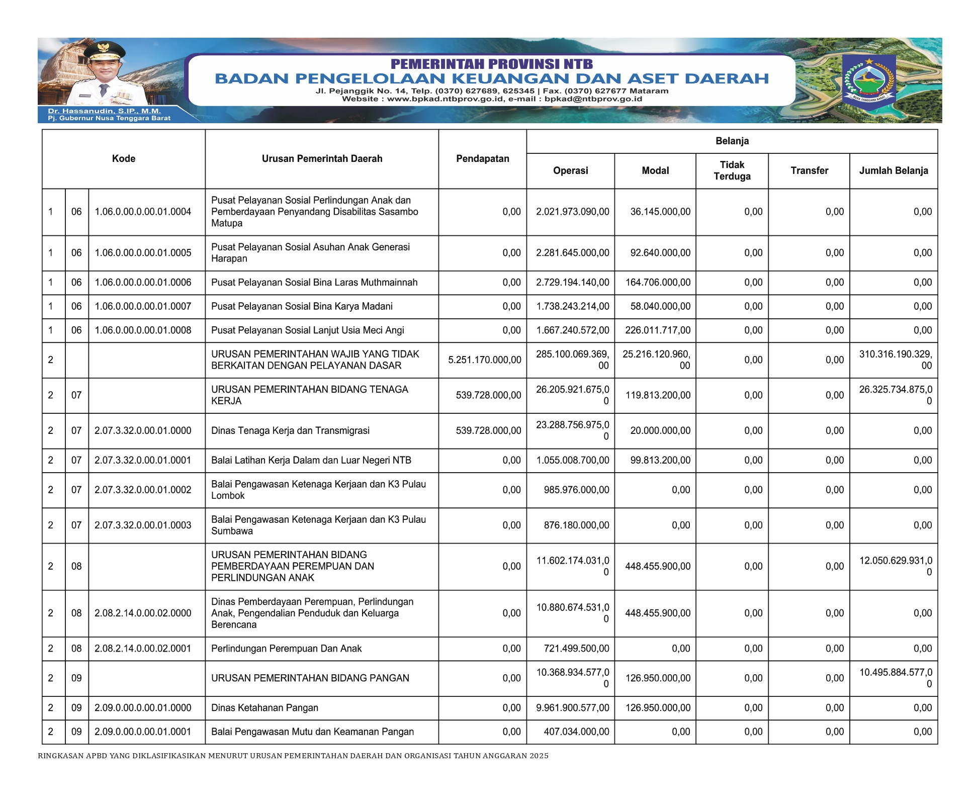 RINGKASAN APBD PROVINSI NTB YANG DIKLASIFIKASI MENURUT URUSAN PEMERINTAHAN DAERAH DAN ORGANISASI TAHUN ANGGARAN 2025..(7)