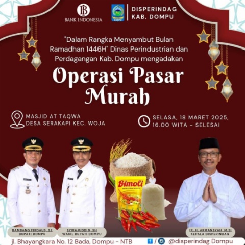 Dia berharap kepada masyarakat untuk memanfaatkan momen pasar murah membeli kebutuhan pokok dengan harga murah. “Kegiatan ini kami adakan di 8 kecamatan, mengikuti jadwal safari ramadhan Pemkab Dompu. Mari manfaatkan pasar murah ini dengan baik untuk membeli beras dan minyak goreng dengan harga terjangkau,” ajaknya.(di/adv)